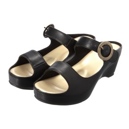 リラックスシュー山羊革ダブルベルトデザインウェッジヒールサンダル