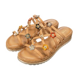 マッシモ チェルッティ牛革小花モティーフ軽量サンダル