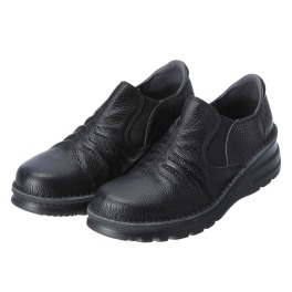 JSハートレーベル牛革シュリンクギャザーアクセント軽量スリッポンシューズ