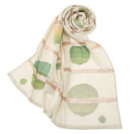 和紙の糸や絣糸の組み合わせによって生まれる、独特の風合いが楽しめるストールです。ボーダー柄をグラーデションにしたデザインが女性らしさを演出。