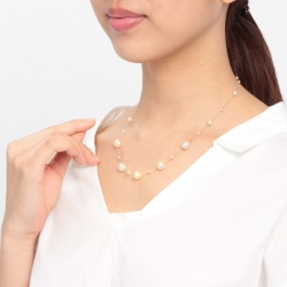 14K無調色ベビーアコヤ&無調色アコヤバロックパールリズミカルデザインステーションネックレス