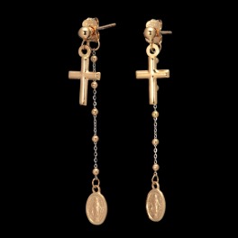 18Kイエローゴールド、18Kホワイトゴールドの2カラーのゴールドを使用し、クロスモティーフやマリアメダルをあしらったピアスです。