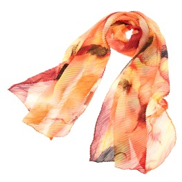 鮮やかな色使いが目を惹くプリントに、プリーツ加工をほどこした、おしゃれなストールです。アレンジしやすい素材感と巻きやすいサイズ感なので、使い勝手抜群。