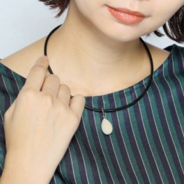 ドロップシェイプの象牙をレザー調のコードと組み合わせたペンダントです。 ■デザイン: 丸みのあるコロンとしたドロップシェイプの象牙をあしらった、シンプルなデザイン。