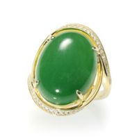 ラウンドカボションの本翡翠をセンターに1石配し、その周りにCZをあしらった、シンプルでクラシカルなリングです。
