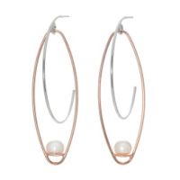 シルバーを用いて作製した2つのフープを組み合わせ、ポテトシェイプの淡水パールをあしらったピアスです。 淡水パールをあしらった縦長のフープが耳元で揺れる、ユニークなデザイン。 定番のフープピアスをモダンなデザインで仕立てており、イタリアらしいファッションセンスを感じさせます。 すっきりとしたフォルムでありながら、耳元で“映える”アイテムです。 【重量】 ・約4.5g 【刻印】 ・あり:925 【サイズ】 ・縦5.1cm×横1.6cm ・金具:ポスト&キャッチ ・左右デザイン:なし 【使用素材】 …