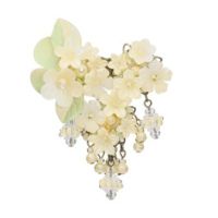 アイボリーカラーを基調に、さまざまなお花をあしらったエレガントなブローチです。 さまざまな素材を用い、可憐な花々を表現したハンドメイドジュエリーをご紹介します。