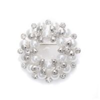 パールビジュウとビジュウをあしらった、クリスマスのイメージにぴったりなリースモティーフのブローチです。