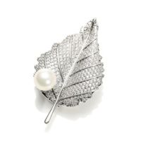 プレミアムパール 貝パール&CZ リーフモティーフ ペンダントブローチ