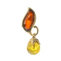 貴重な岩手県久慈産の琥珀(アンバー)のラウンドシェイプを木の実に、リトアニア産の琥珀(アンバー)を葉っぱに見立てたピンブローチです。