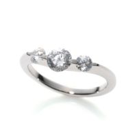 高品質のCZであるジアモンドをU字を描く地金に計3石あしらった、リングです。 ■デザイン: センターと両サイドで石の大きさを変えて配しました。
