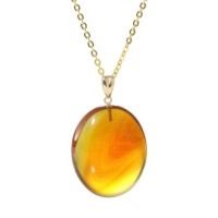 貴重な岩手県久慈産の琥珀(アンバー)のオーバルシェイプをあしらったペンダントです。 アンバーの奥深い輝きを活かしたシンプルなデザインで、年代を問わずさまざまなシーンで着用いただけます。 アンバーは一つ一つの色合いが異なります。お客様だけのアイテムとしてお楽しみください。 バチカンには10Kを使用し、アンバーの色合いを引き立てるゴールドカラーのチェーンを組み合わせました。 ■加工: 国内にあるアンバーの専門工場は当取引先のみといわれており、金具を付ける穴の部分まで磨き、より美しさを引き出す技術は…