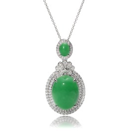 本翡翠&CZ ツインデザイン オーバルカボション ボリュームペンダント
