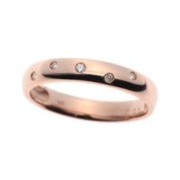 18Kローズゴールドを使用し、計5石のダイヤモンドをドット状にあしらったリングです。爪がなく、引っかかりを気にせずにお着けいただけます。