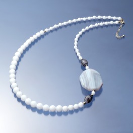 アゲート&ホワイトカルセドニーオクタゴンアクセントロングネックレス