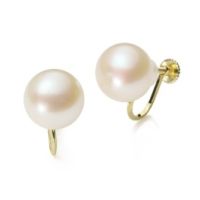 幅10mmUPのボタンシェイプの淡水パールをあしらった、スタッドデザインのイヤリング/ピアスです。 ■デザイン: 程良い大きさが魅力の幅10mmUPのボタンシェイプの淡水パールを用いました。