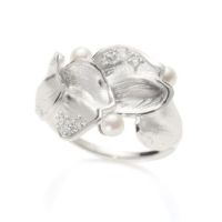 ベビー淡水パールとCZを組み合わせた、ボタニカルデザインのリングです。 ■デザイン: 希少なベビーサイズかつセミラウンドシェイプの淡水パールと、テクスチャーをほどこしたニュアンスのある地金の表情が相…