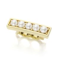 ボタンシェイプ淡水パール&CZフラワーモティーフタックピン