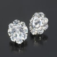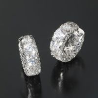 スワロフスキージェムスが認定したカット工場で、当取引先が“グリッターカット”と呼んでいるハンドカットをほどこした大粒のCZと、ラウンドカットCZをあしらったピアス/イヤリングです。