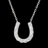 “スワロフスキー社”の持つ技術を駆使してマシンカットをほどこした、CZ(スワロフスキージルコニア)をあしらったホースシューモティーフのネックレスです。