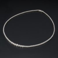 “スワロフスキー社”の持つ技術を駆使してマシンカットをほどこした、CZ(スワロフスキージルコニア)を連ねたテニスネックレスです。