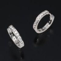 “スワロフスキー社”の持つ技術を駆使してマシンカットをほどこした、CZ(スワロフスキージルコニア)をあしらったフープピアスです。