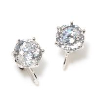 スワロフスキージェムスが認定したカット工場で、当取引先が“グリッターカット”と呼んでいるハンドカットをほどこした大粒のCZと、ラウンドカットCZをあしらったピアス/イヤリングです。