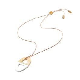 ミル・レーヴ水牛オーバルシェイプバイカラーデザインロングコードペンダント