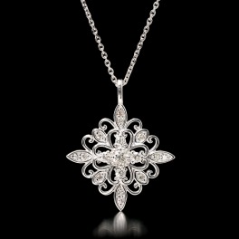 18Kを使用し、計0.2カラットUPのダイヤモンドを配したスノーフレーク(雪の結晶)モティーフのペンダントです。