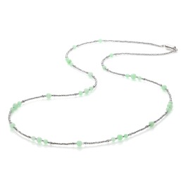 無着色本翡翠(無色透明剤の含浸処理あり)のラウンドビーズと、シルバーカラーのファセットビーズ(模造石)を繋げた、ステーションデザインのロングネックレスです。