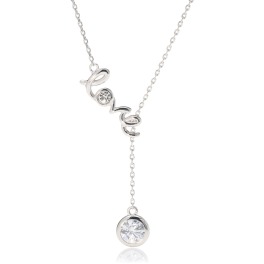 筆記体風の“love”モティーフとCZ、ビジュウをあしらったネックレスです。 ■デザイン: 身に着けた時に筆記体風の“love”の文字が斜めになる、シンプルながらもかわいらしさをプラスした、当ブランド…