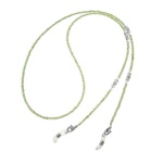 爽やかな色合いがお顔もとに映える上品なメガネチェーンです。丸珠のペリドットを繋ぎ、間に翡翠を配して清楚で品のあるデザインに。