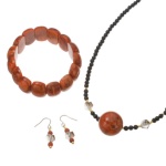 パッションコーラルを使った、ネックレス、ブレスレット、イヤリングまたはピアスの豪華な3点セットです。