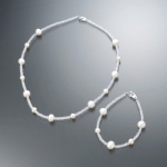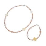 淡水パール&水晶 ステーションネックレス&ブレスレット セット
