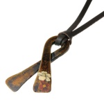 南部鉄器弦職人の技術を生かし、熟した鉄を金槌でたたいて行う手作業から生まれた南部鉄アクセサリー。古典的な表現で、季節の移ろいを淡く描いたペンダントです。