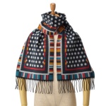 スクエア柄とドット柄を組合せた、遊び心あふれるカラフルでポップなマフラー。エトワール海渡が直輸入しているフランス製のマフラーです。