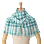 ルナ・ジュメール ポンポン糸入り ふわモコチェック柄ストール