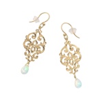 爽やかな色合いがお顔もとに映える上品なメガネチェーンです。丸珠のシーブルーカルセドニーをさり気なく配し、アクセントをプラス。
