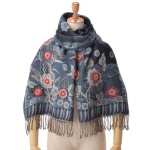 Lily Mateウールレーヨン馴染み配色花柄刺繍ストール