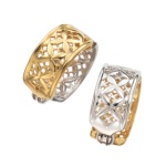 耳元を取り巻くように装着して、存在感をアピールする「イヤークリップジュエリー」。マーキスシェイプに透かしでローズモチーフを描いた、エレガントなデザインに仕上げました。