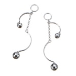 ダイヤモンドに直接穴を開けて細い丸管で繋いだ、繊細なデザインのイヤリングまたはピアスです。左右それぞれ3石ずつ、合計0.2ctUPのダイヤモンドをIラインに連ねました。