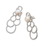 18KWG 黒蝶真珠ナチュラルカラー デザインイヤリング/ピアス