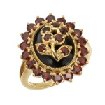 SS ゴールドトーン ガーネット&ブラックカルセドニー リング