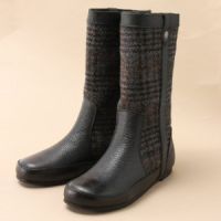 シボのあるレザーで切替えた、ハリスツイードのミドルブーツ。落ち着いた大人の雰囲気を演出します。内側にはウレタン素材、ソールには返りがよくグリップ性に優れた成形底を使用。