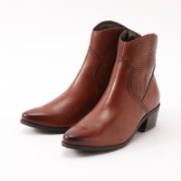 かかと部分を異素材で切替えた、大人シンプルなショートブーツ。すっきりとしたポインテッドトウが、スタイリッシュな印象を高めてくれます。
