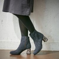 【本革×ストレッチ素材】チャンキーヒールショートブーツ