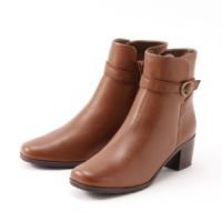 ベルト使いでおしゃれな印象を高めた、大人シンプルなショートブーツ。洗練された美しいフォルムが、装いを上品に引き立ててくれます。ヒールが太めなので安定感があり、歩きやすさも良好。内側サイドにファスナーが付いた、脱ぎ履きしやすい仕様もポイントです。
