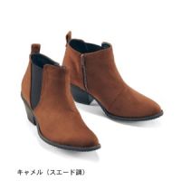甲部分はスムース、かかと部分はスエード調の異素材使いのブーツ。コンビブーツは、着こなしにアクセントを添えます。ショート丈なので、人気のガウチョパンツなど今どきボトムとも好相性。返りが良く滑りにくいソール、脱ぎ履きしやすい内側ファスナーもうれしいポイン…