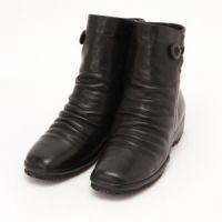 しなやかなレザーを使用した、大人に似合うおしゃれなショートブーツ。シワで表情を付けたニュアンスのあるフォルムが、足元にこなれ感を演出してくれます。サイドのボタンがさり気ないアクセントに。内側にクッション性があるので、履き心地◎。屈曲性の良いソールで、…