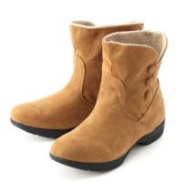 上品な印象のスエード調素材を使用したブーツ。切替えとサイドのくるみボタンがアクセントになった、シンプルなデザインです。履き口の内側を異素材で切替えているので、折り返してもかわいくキマる2WAYタイプ。地面から4cm4時間までの防水設計で、水がしみ込み…